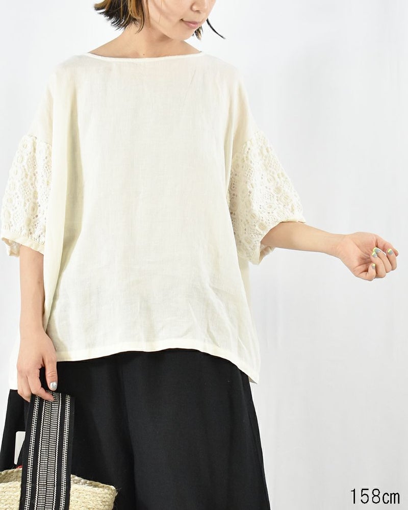 motomi.m リネン袖レースプルオーバー