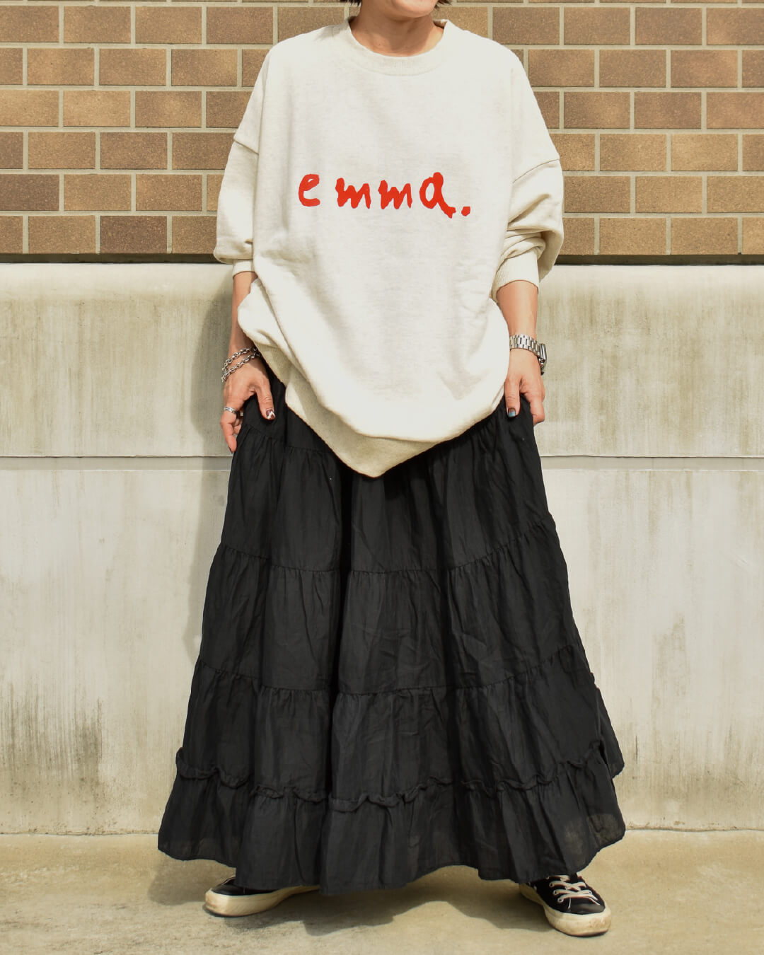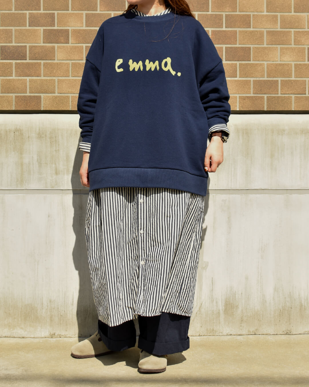 フランスの女の子の名前「emma」を手描き風ロゴであしらった特別な1枚。