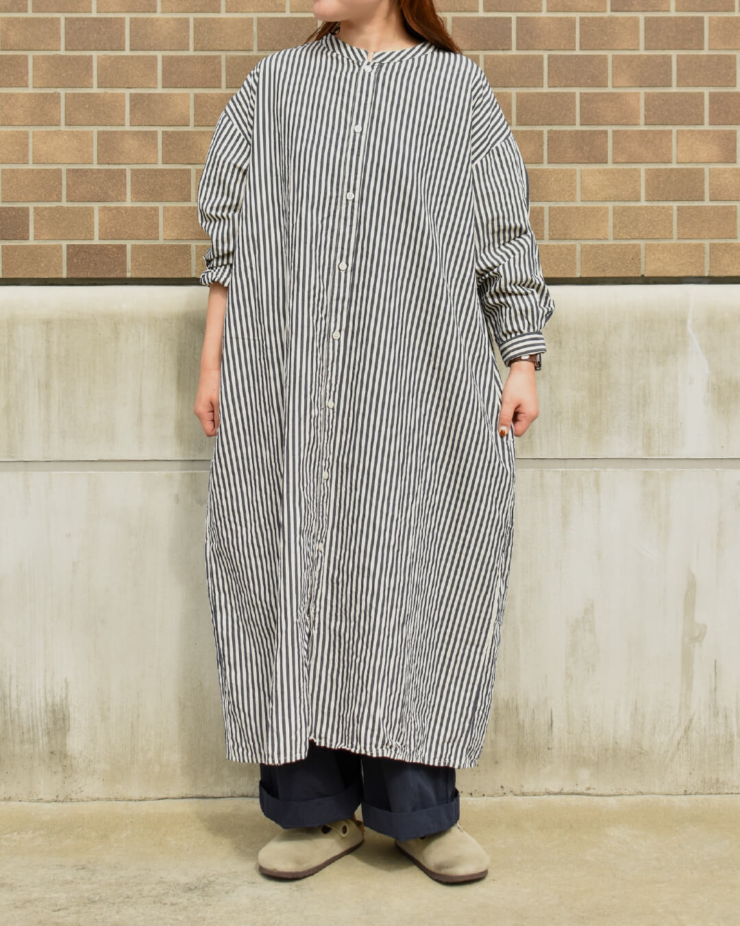 Laboratory×Bleu ストライプ バンドカラーシャツワンピース