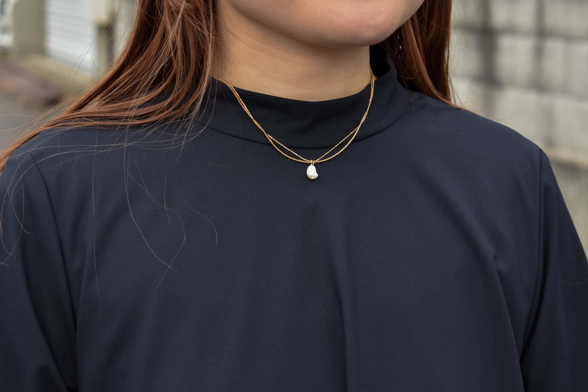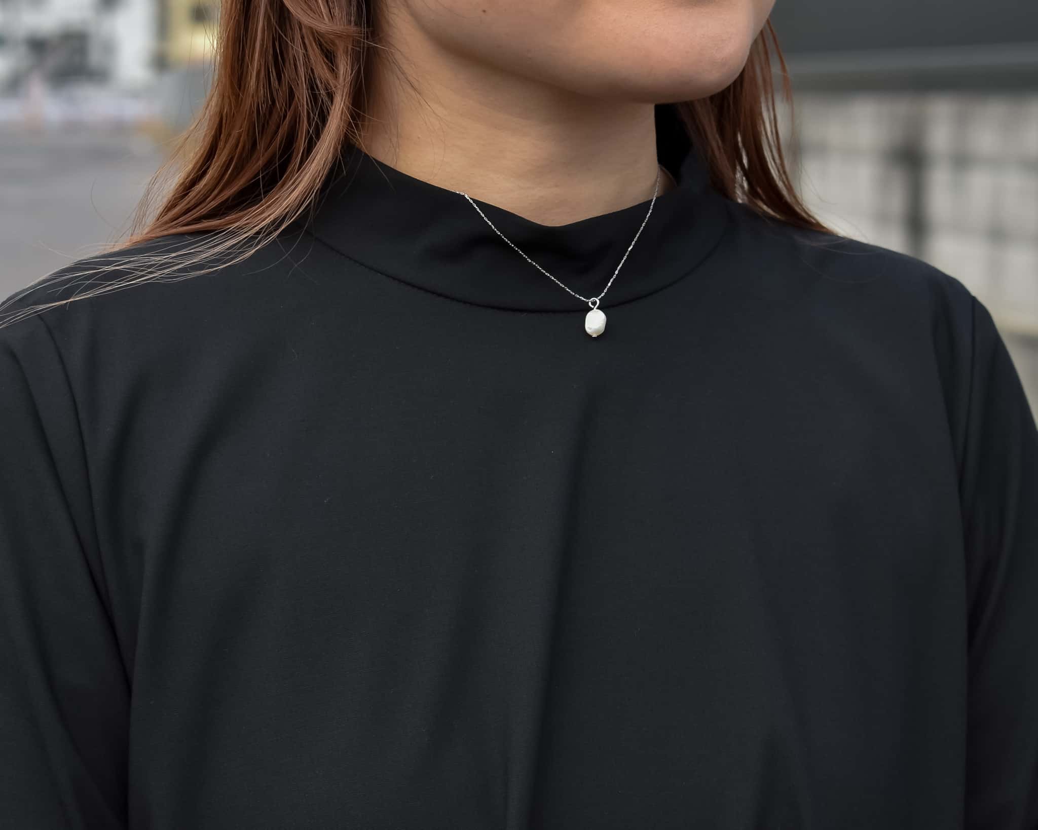 首元をやさしく包むモックネック。