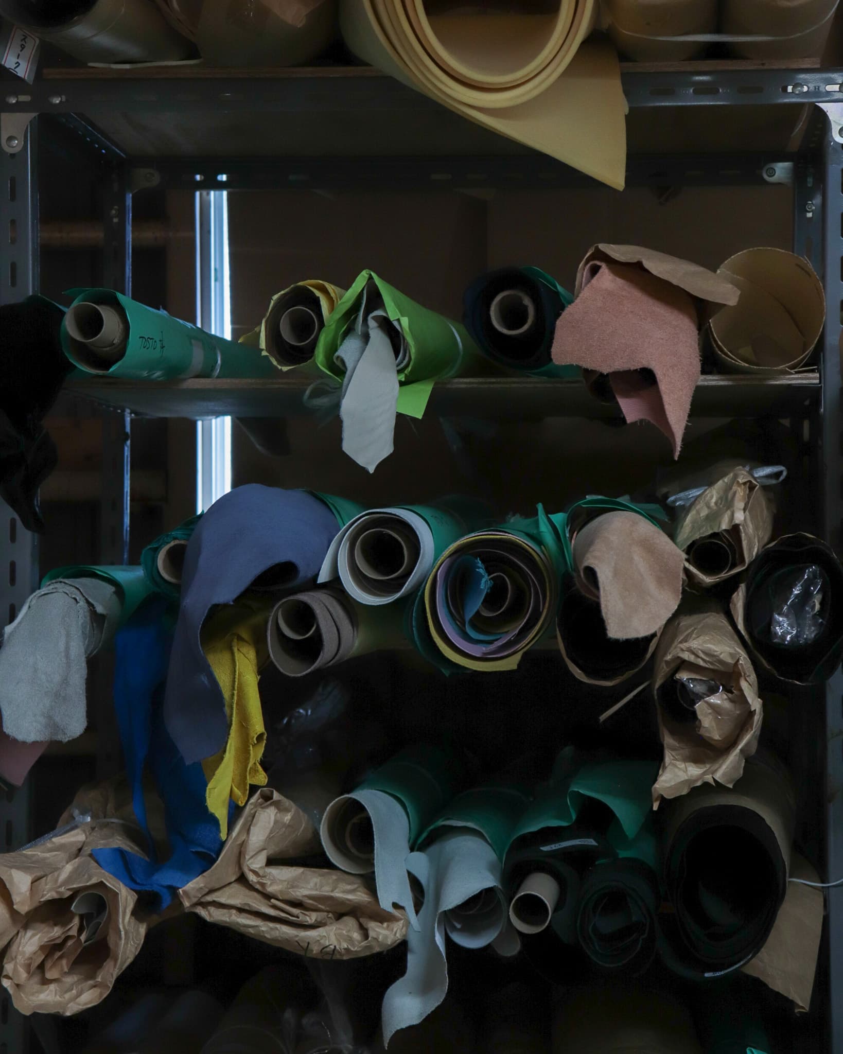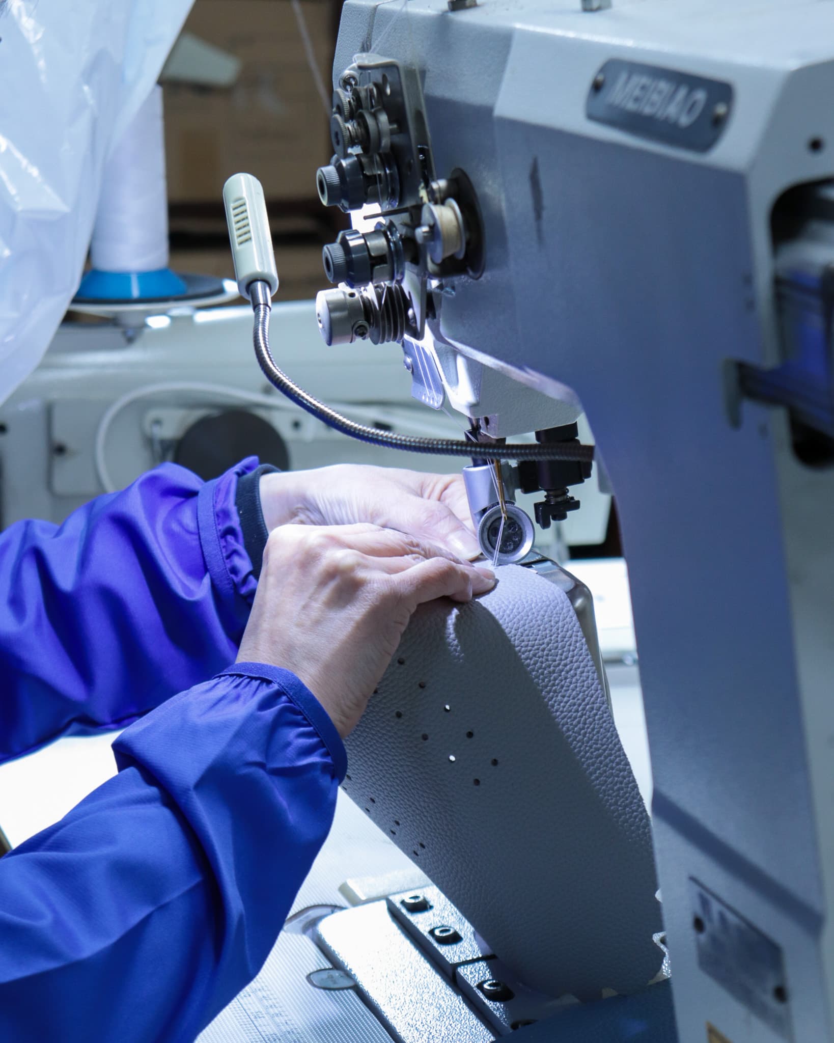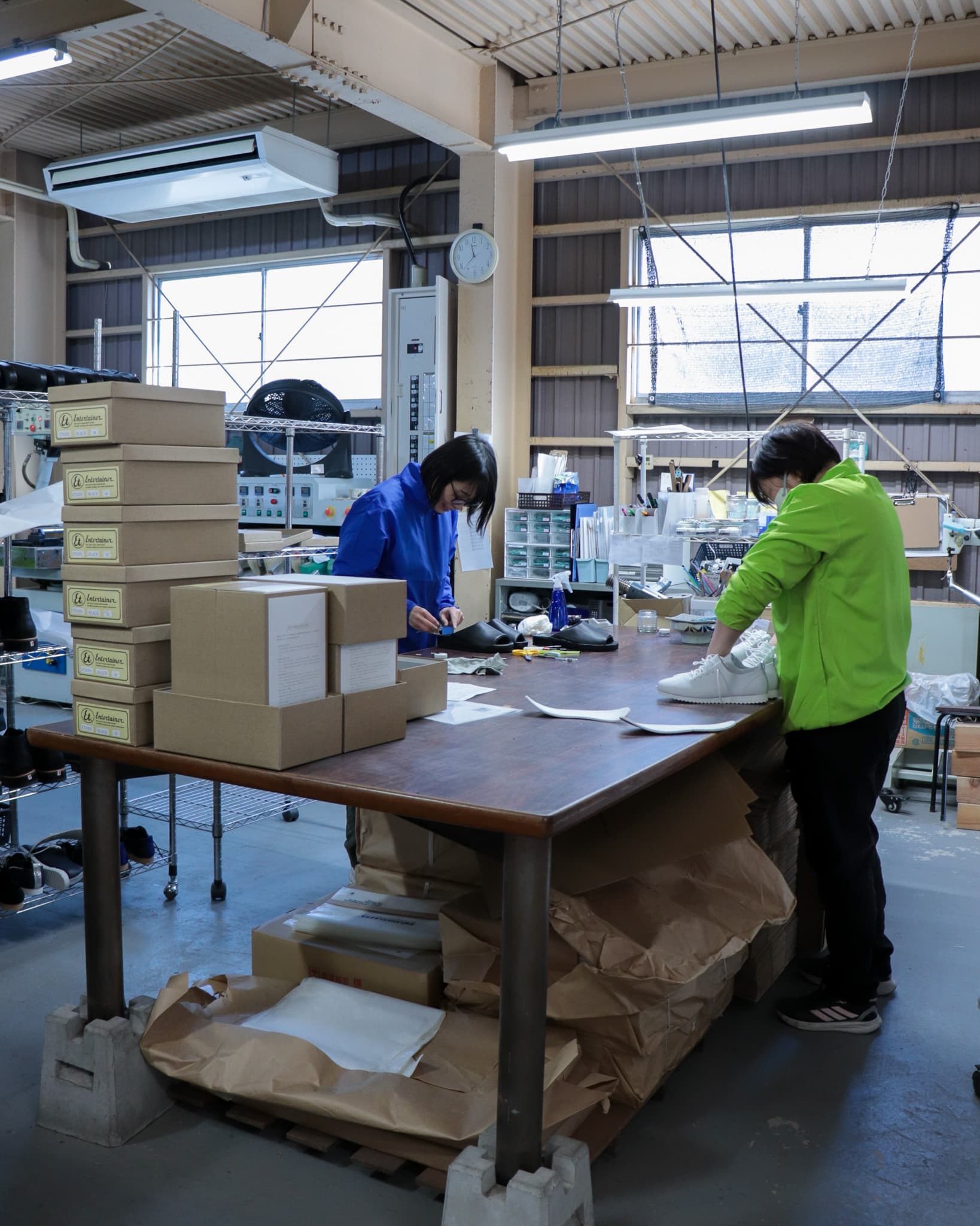 工場の扉を開けると、革の匂いと機械の音が静かに響いていました。