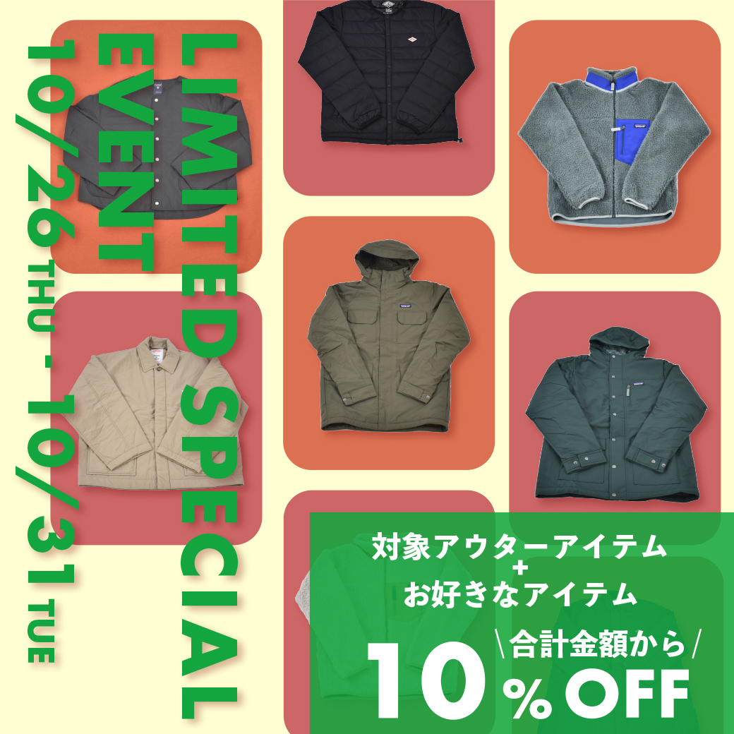 指定のアウター10アイテムより1点と当店で販売中のお好きなアイテム1点の計2点以上のお買い上げで合計金額より10%OFF!