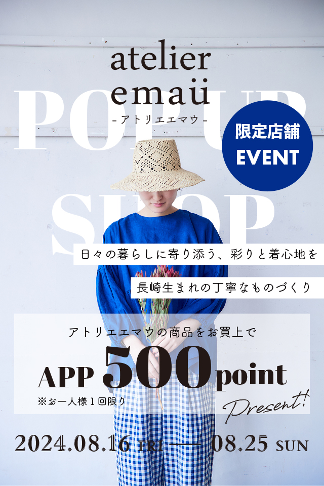 atelier emau(アトリエエマウ)の商品を限定店舗でPOPUPを開催致します。