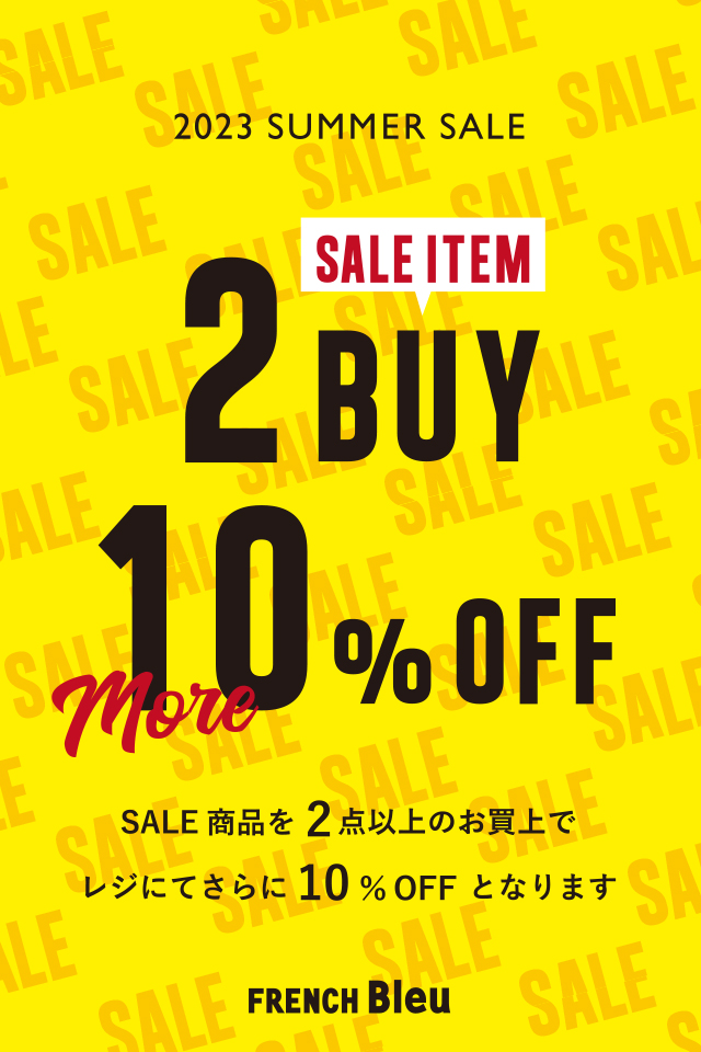 SALE商品を2点以上のお買上で、レジにてさらに10%OFFにさせていただきます。