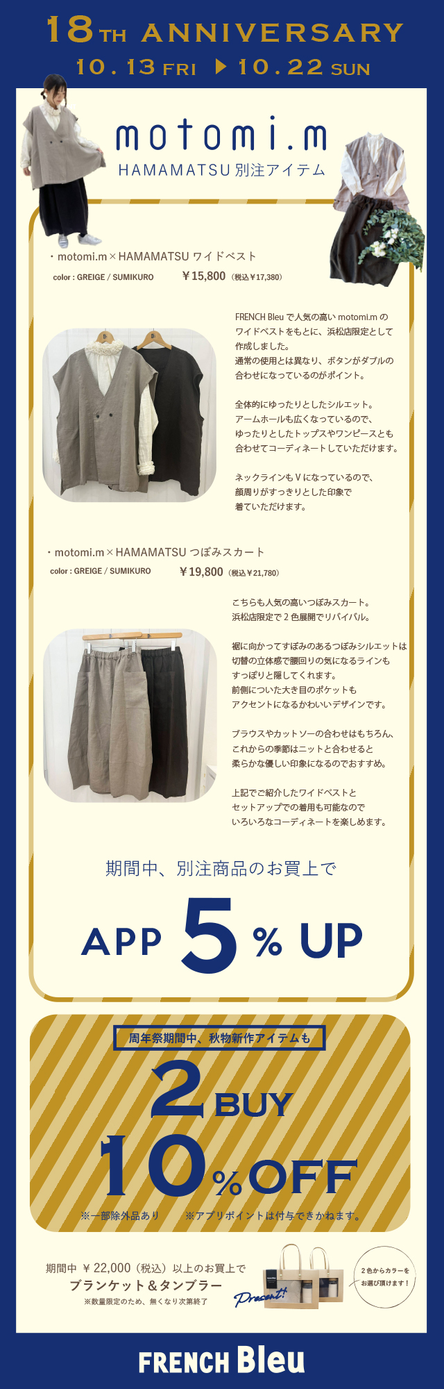 周年祭期間中、秋物新作商品も2BUY10%OFF!