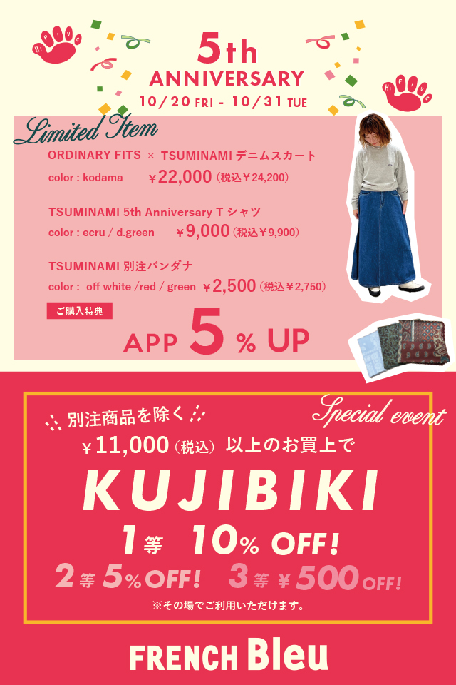 別注アイテムを除く、¥11,000(税込)以上のご購入でくじ引きに挑戦!