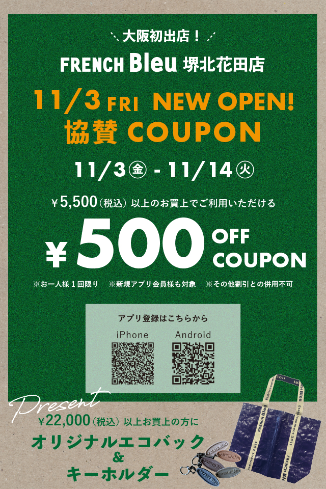 FRENCH Bleu堺北花田店OPEN協賛COUPON