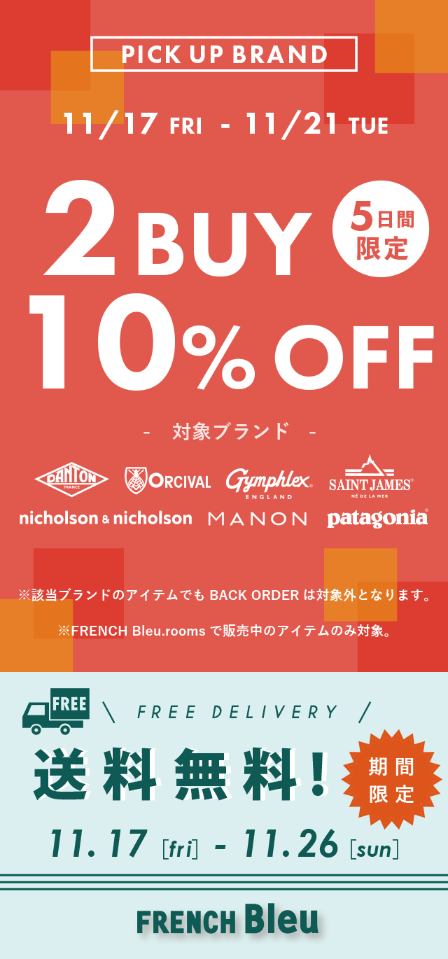 FRENCH Bleu.roomsで5日間限定で指定ブランド2点以上の購入で10%OFF!