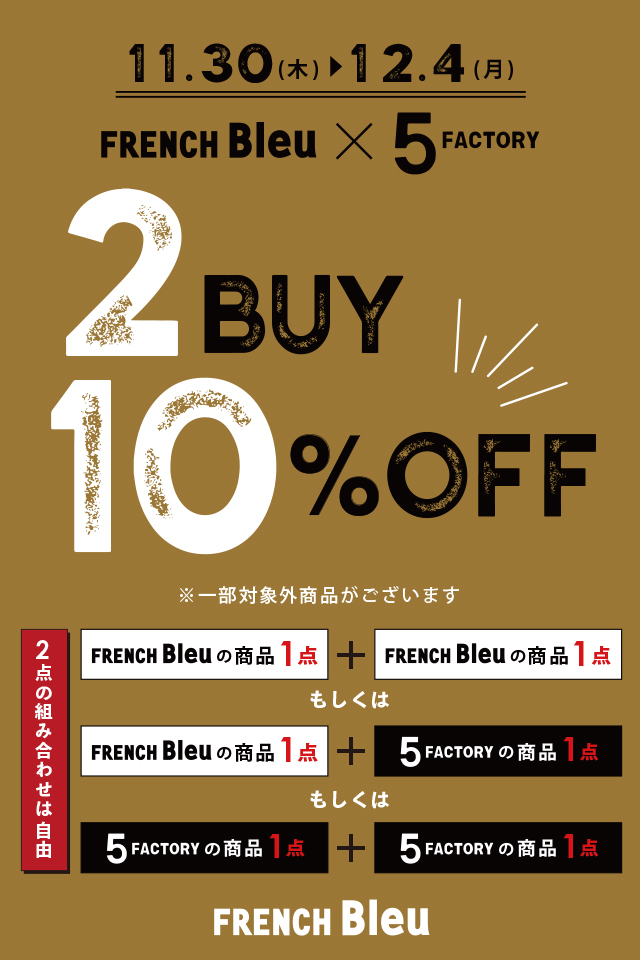 FRENCH Bleu岡崎&5FACTORYの商品を2点以上お買い上げでレジにて10%OFF!!