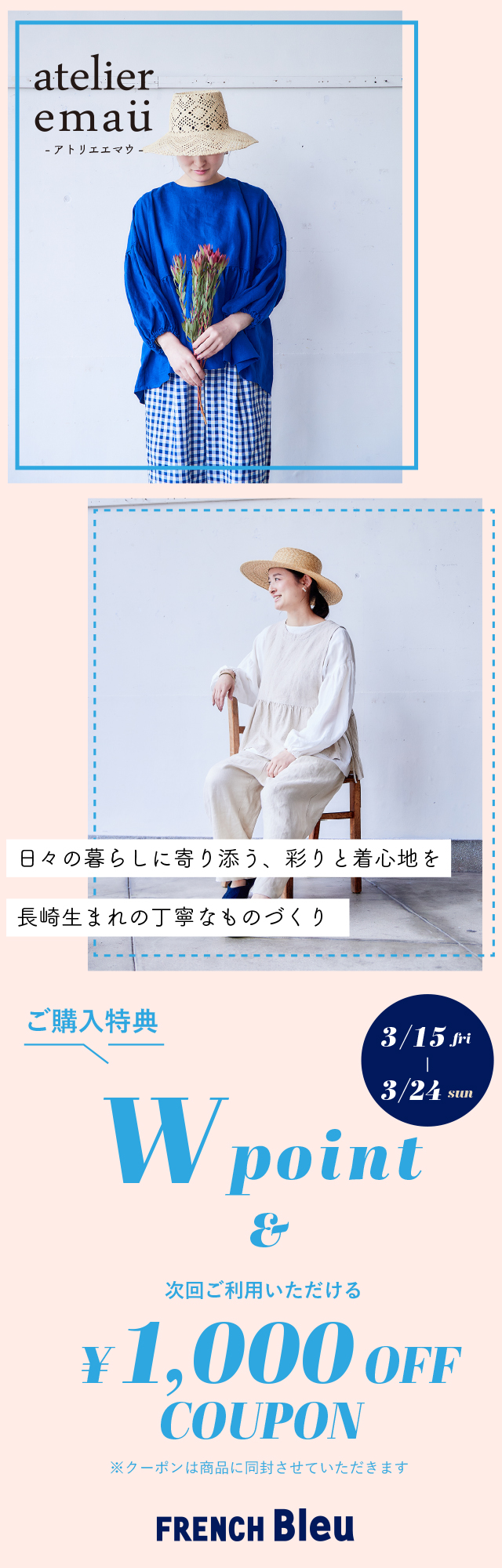 期間中、『atelier emau』のアイテムをご購入でAPPポイント+Wpoint。
