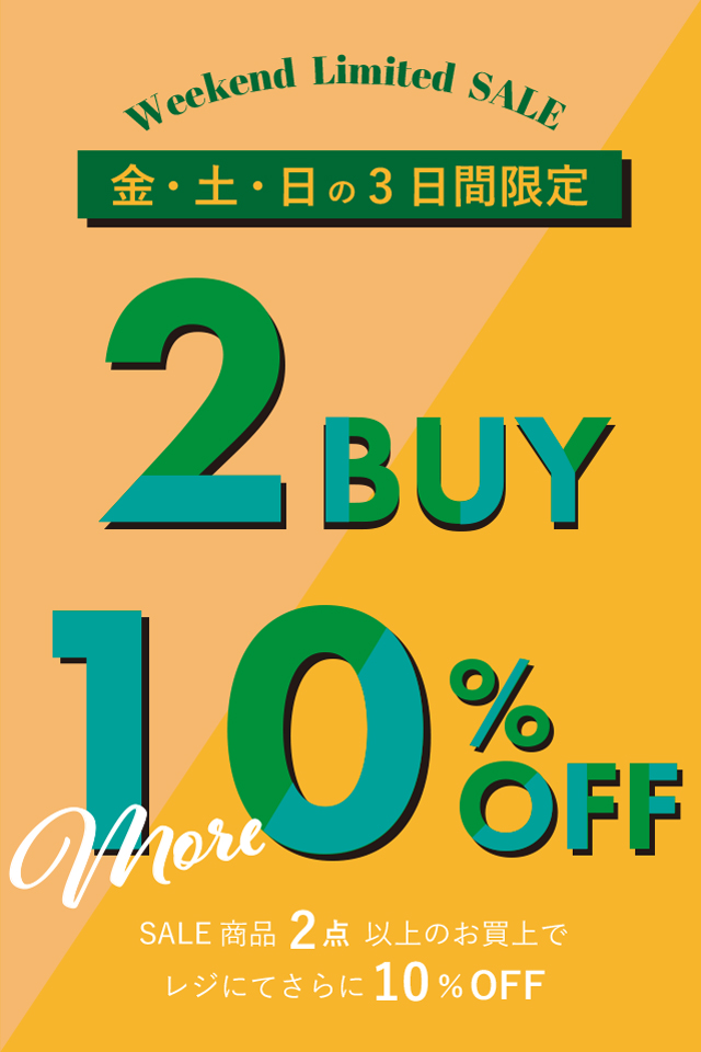 3日間の週末限定!SALE商品2点以上のお買上で、レジにてさらに10%OFF!