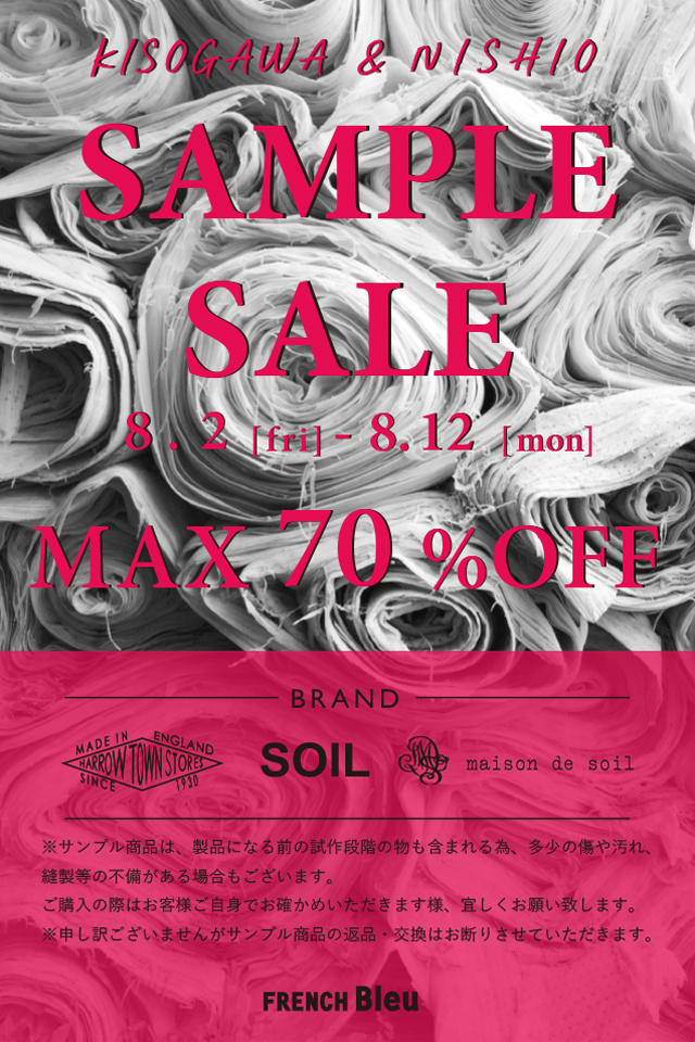毎回大人気のサンプルセールを今期も開催できる運びとなりました♪