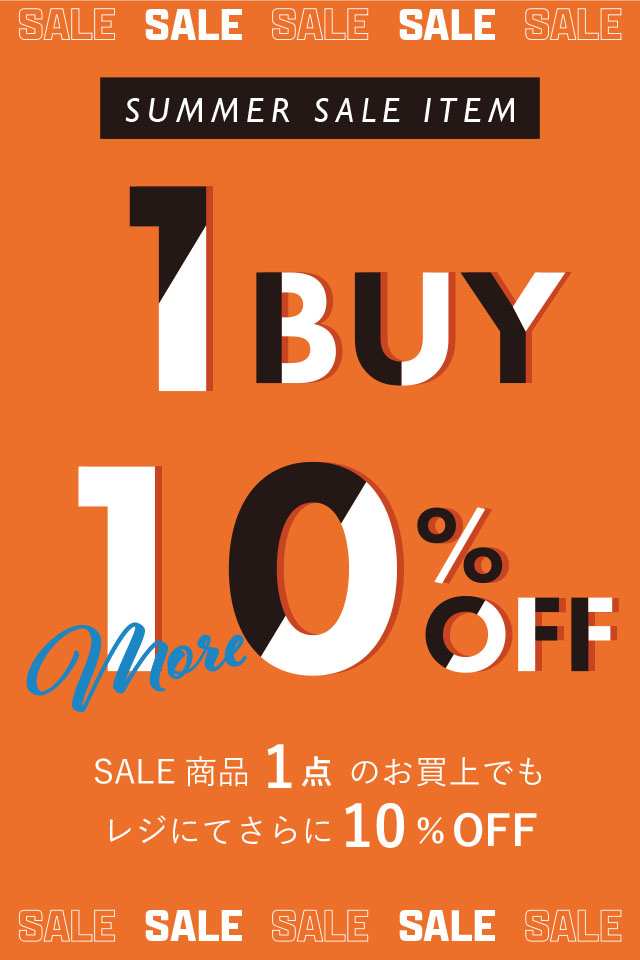 SALE商品を1点以上のお買上で、レジにてさらに10%OFFとなります。