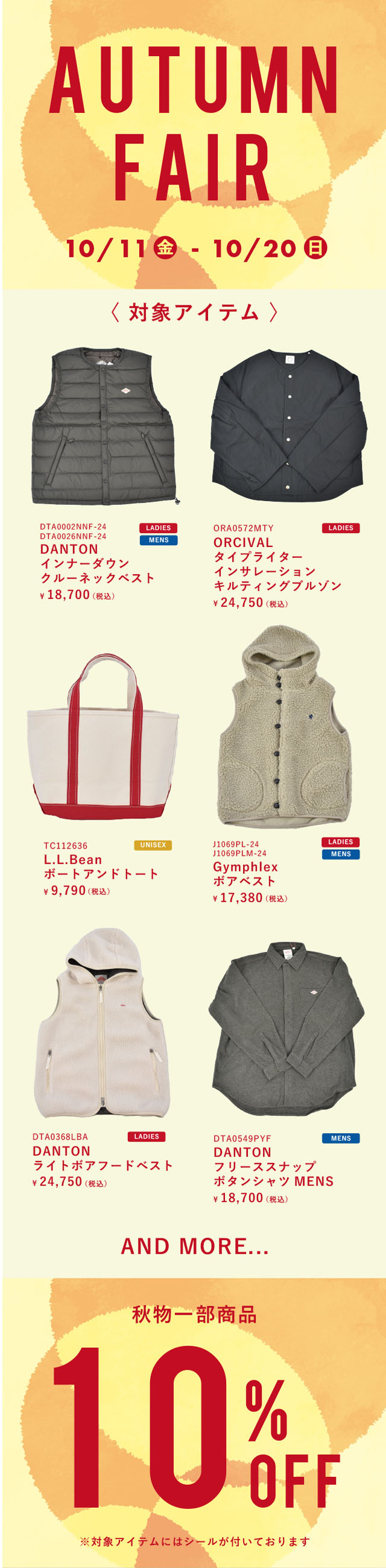 秋物一部商品10%OFF!