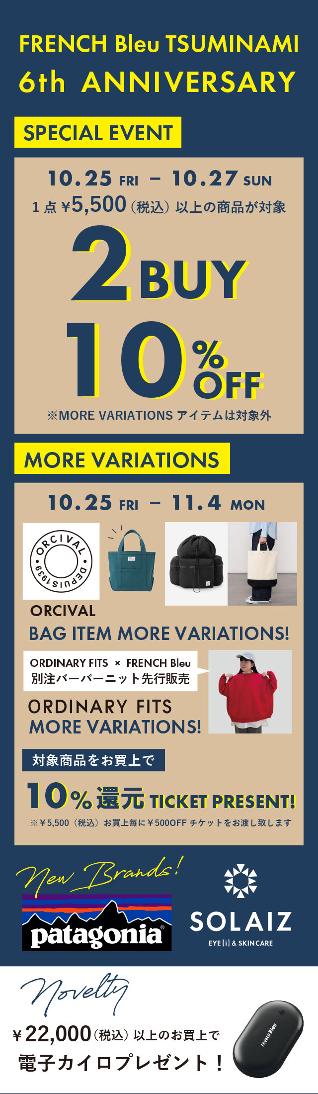 また、リニューアルOPENに伴い、他店舗でも人気のアウトドアブランドpatagoniaや、アイケアブランドSOLAIZの展開が開始となります。