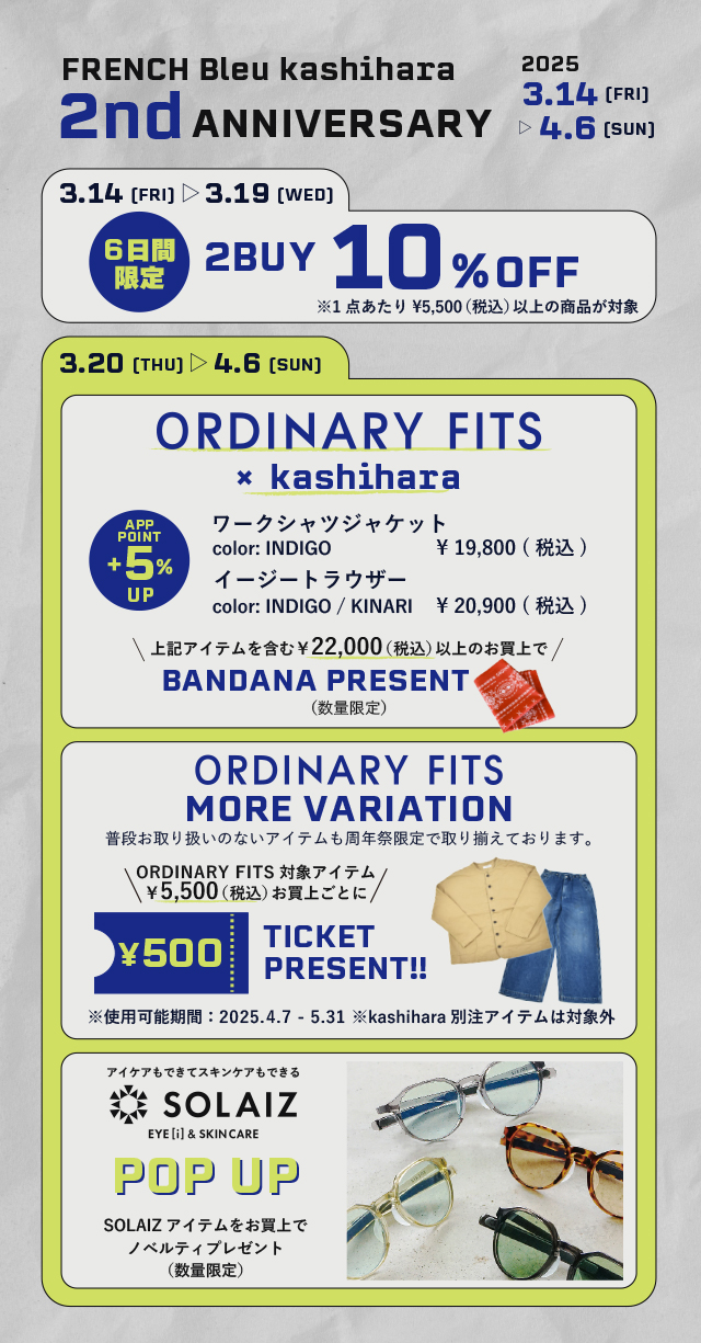 FRENCH Bleu橿原店で春物のお買い物と記念すべき2周年祭を是非お楽しみ下さい♪