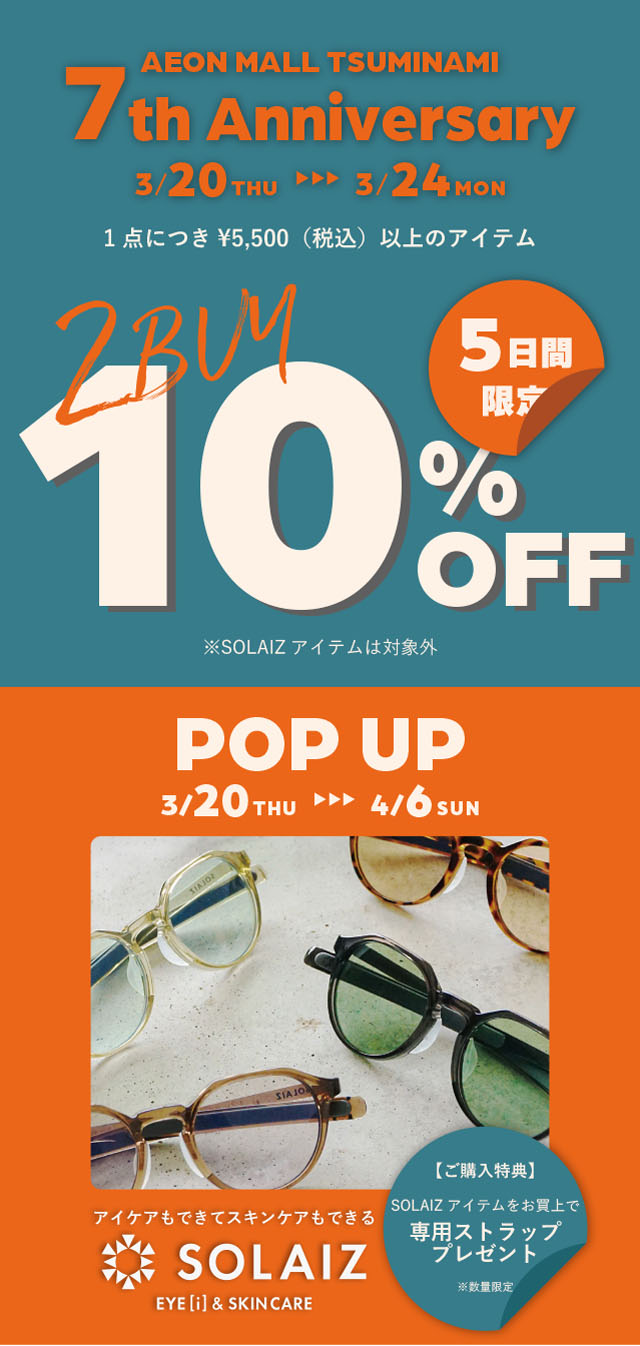3/20(木)~4/6(日)の期間中、アイケアブランドSOLAIZのPOP UPを開催!