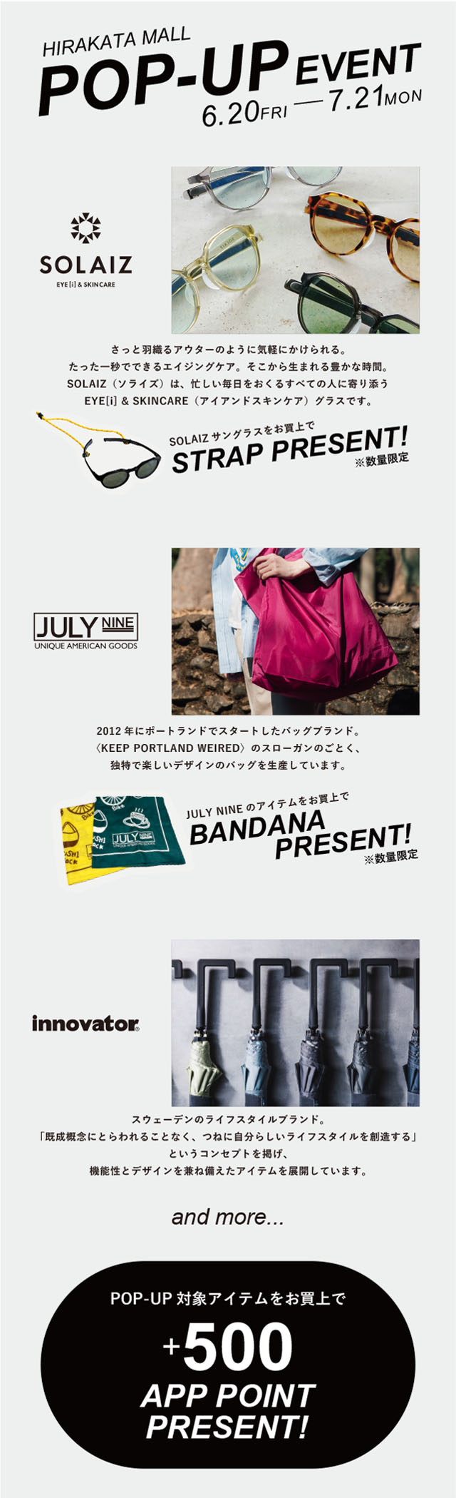 期間中にPOP-UP対象アイテムをお買上で、アプリ+500ポイントをプレゼント!