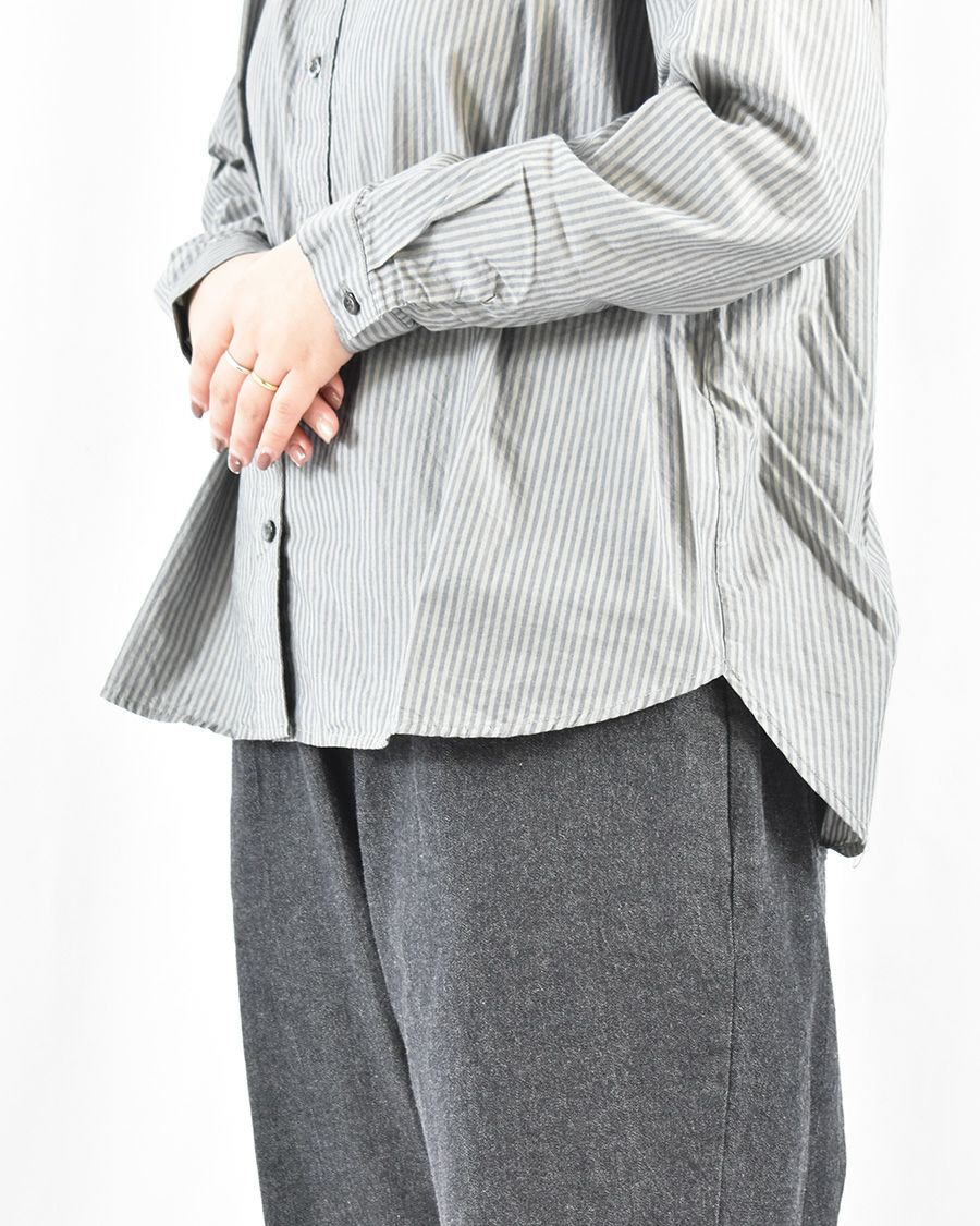 merci シャギーチェックetストライプスタンドカラーロングシャツ
